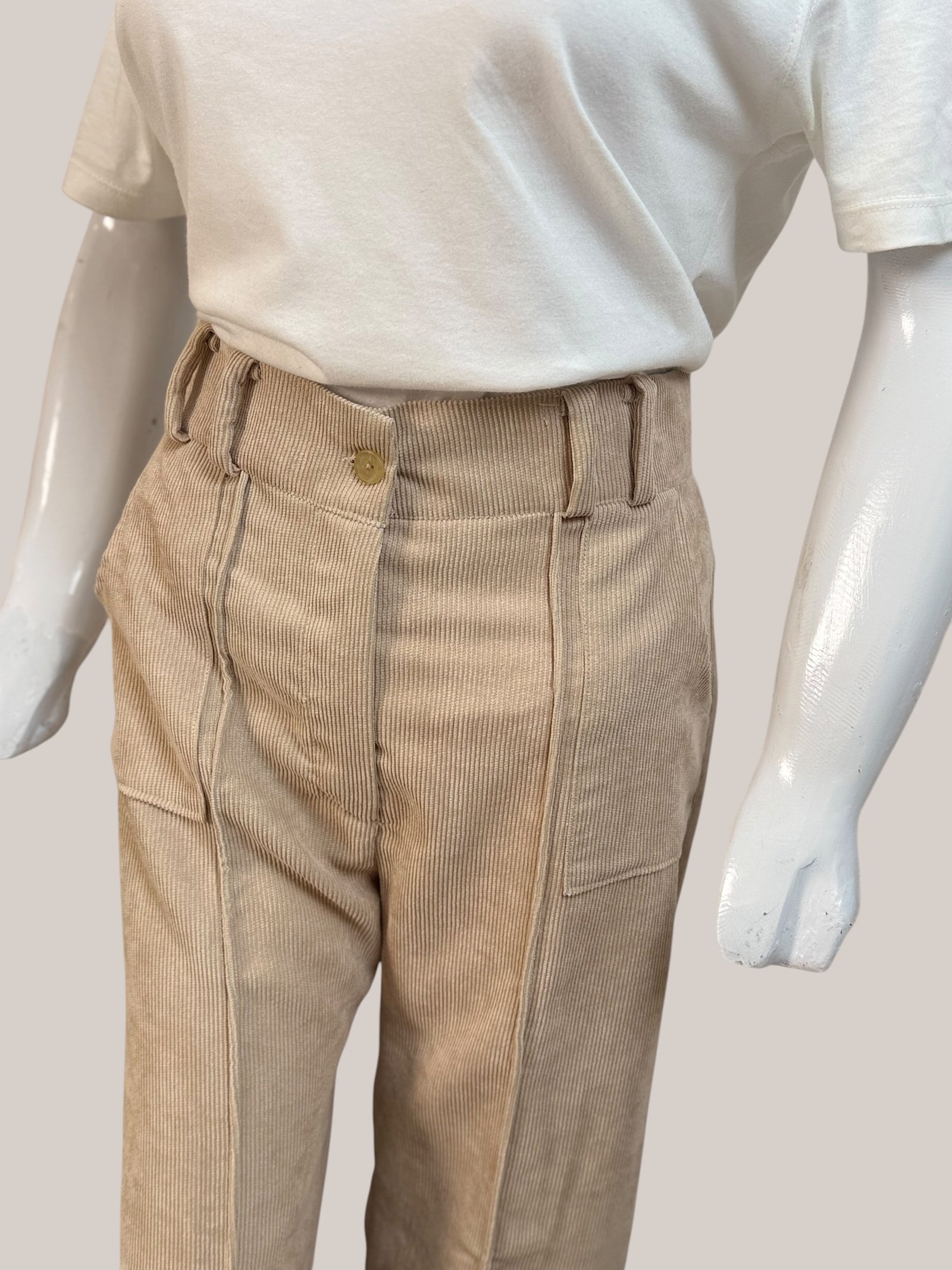 These corduroy camel brown baggy pants for women come in sizes 30, 32 & 40, offering a relaxed fit and stylish comfort. Perfect for casual, office, or smart-casual occasions.