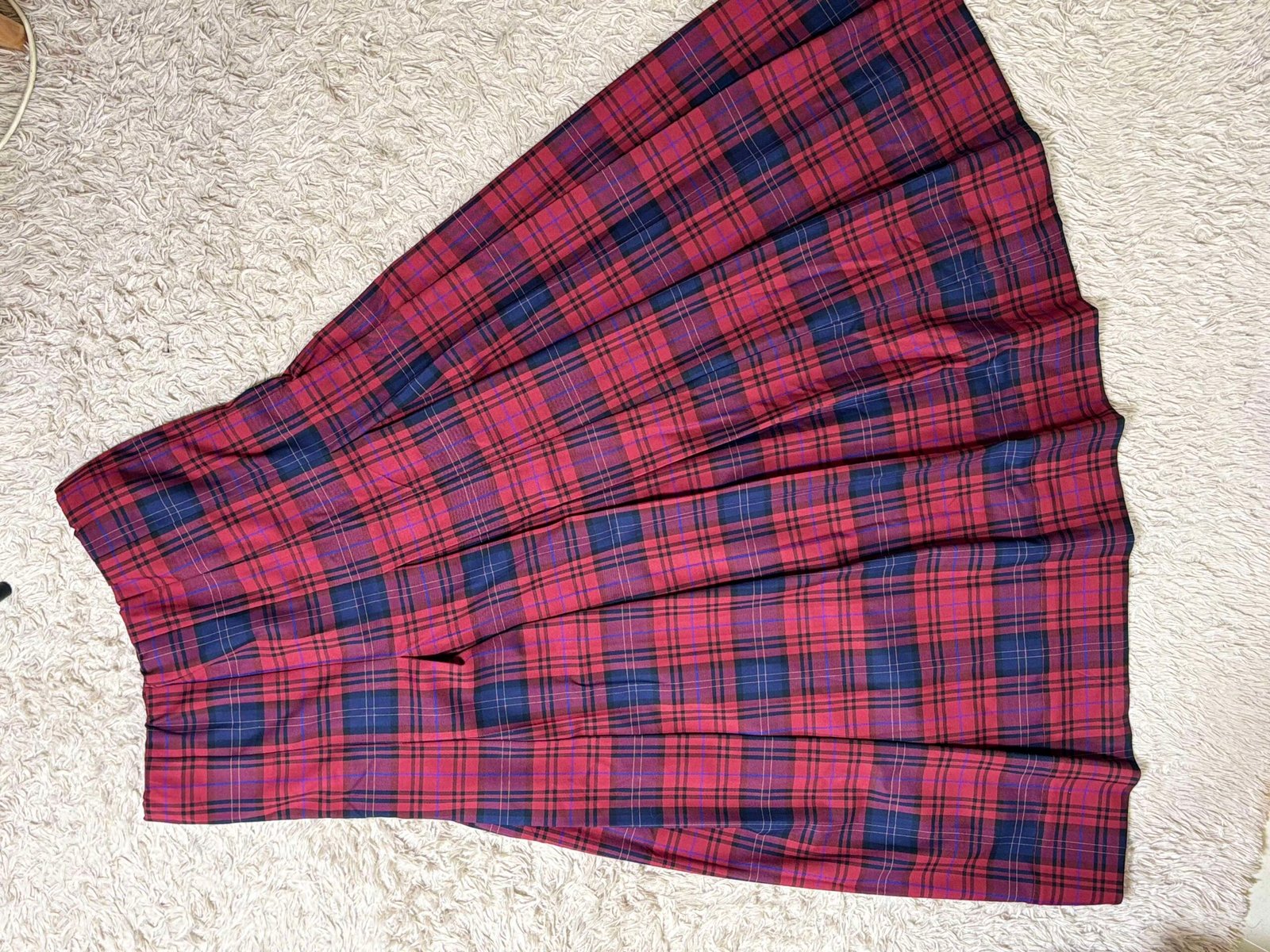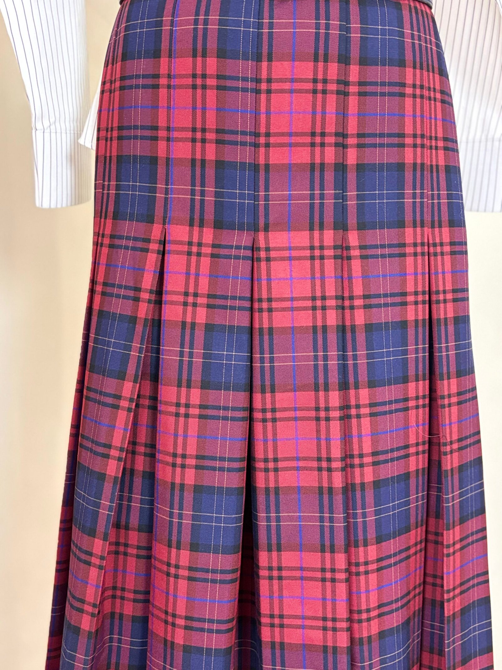 Red & Navy Plaid Pleated Maxi Skirt for Women